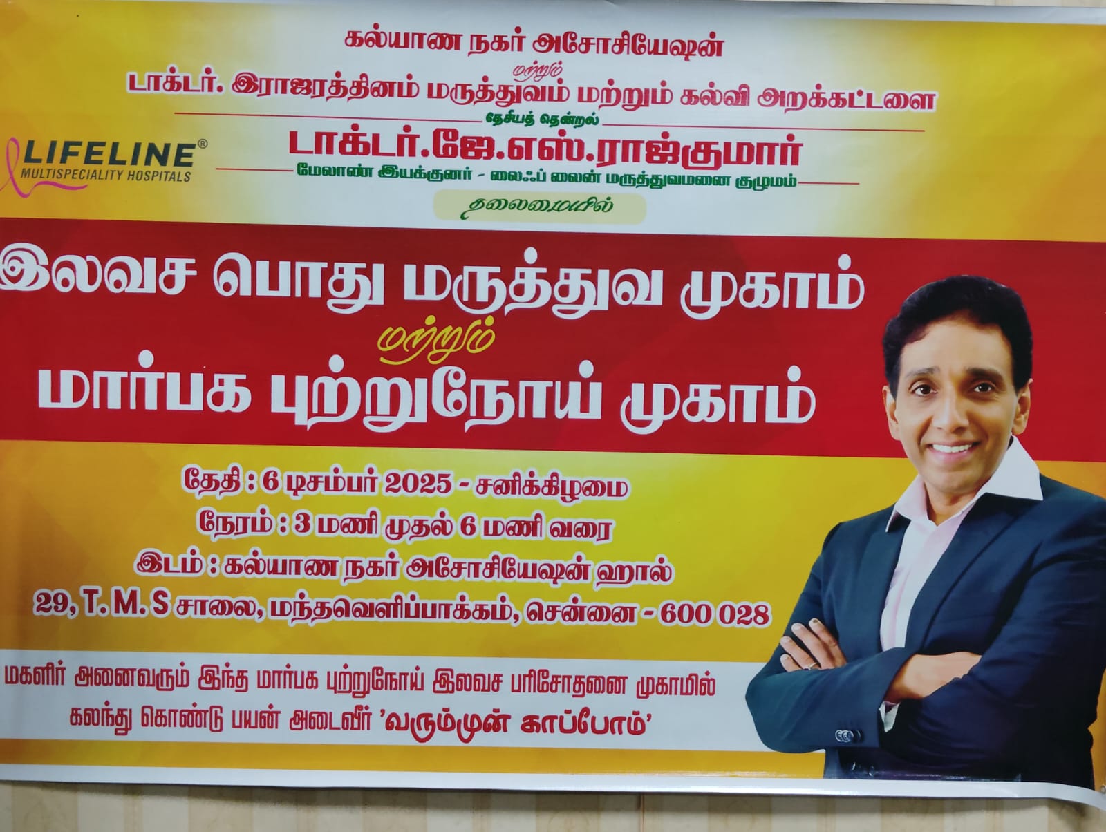 Upcoming Breast Cancer Awareness Program by Dr.J.S.Rajkumar Founder Life Line Hospital on 06.12.2025 Saturday from 3.00 PM to 6.00 PM SHARE ON: